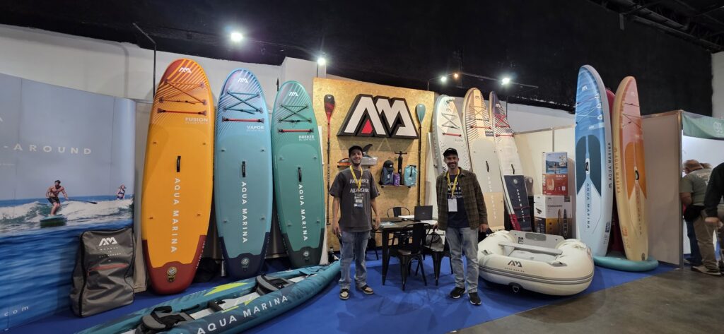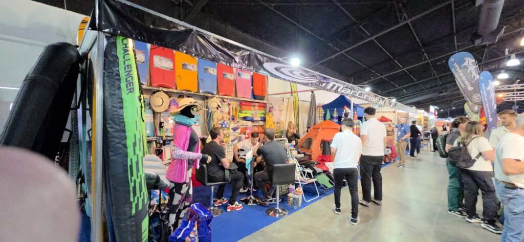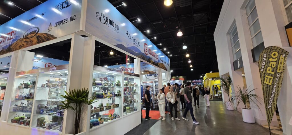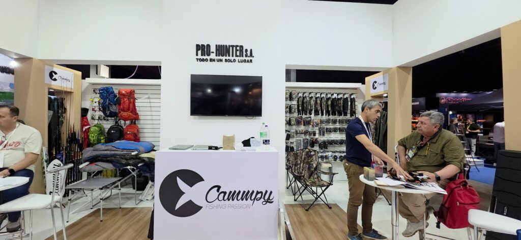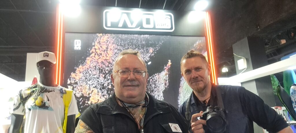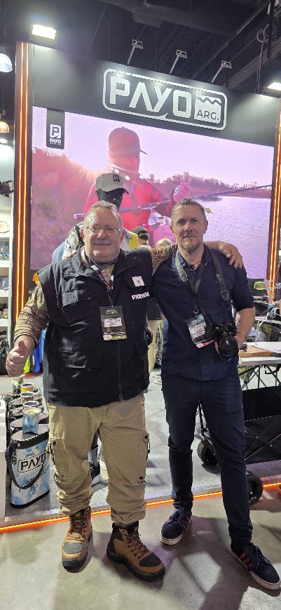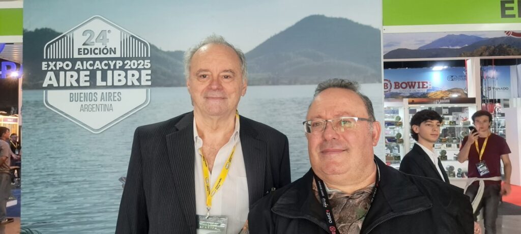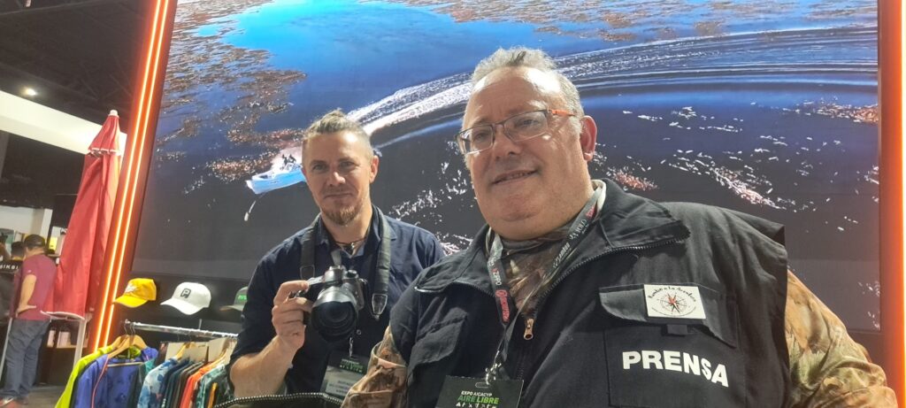Uno de los momentos destacados fue la visita al stand de A Payo Argentina, empresa nacional dedicada a la fabricación de remeras técnicas para pesca y actividades outdoor. Allí conversamos con Germán Cerroti, apasionado comunicador y explorador, y con Guillermo Muttoni, actual director de AICACYP, quien nos compartió su visión sobre el crecimiento del sector y el rol de la Expo como punto de encuentro clave para la industria.