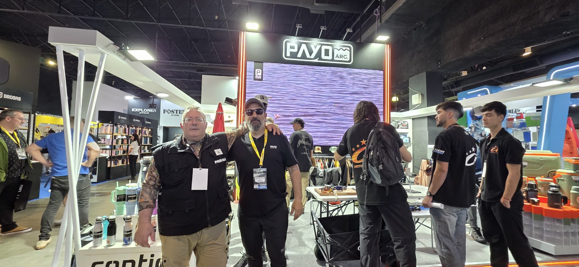 Uno de los momentos destacados fue la visita al stand de A Payo Argentina, empresa nacional dedicada a la fabricación de remeras técnicas para pesca y actividades outdoor. Allí conversamos con Germán Cerroti, apasionado comunicador y explorador, y con Guillermo Muttoni, actual director de AICACYP, quien nos compartió su visión sobre el crecimiento del sector y el rol de la Expo como punto de encuentro clave para la industria.