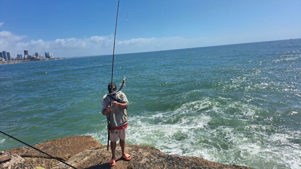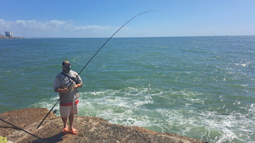 Estuvimos realizando una nota de pesca hoy Viernes 8 de Noviembre del 2024 , en la Escollera Sur de Mar del Plata Argentina.