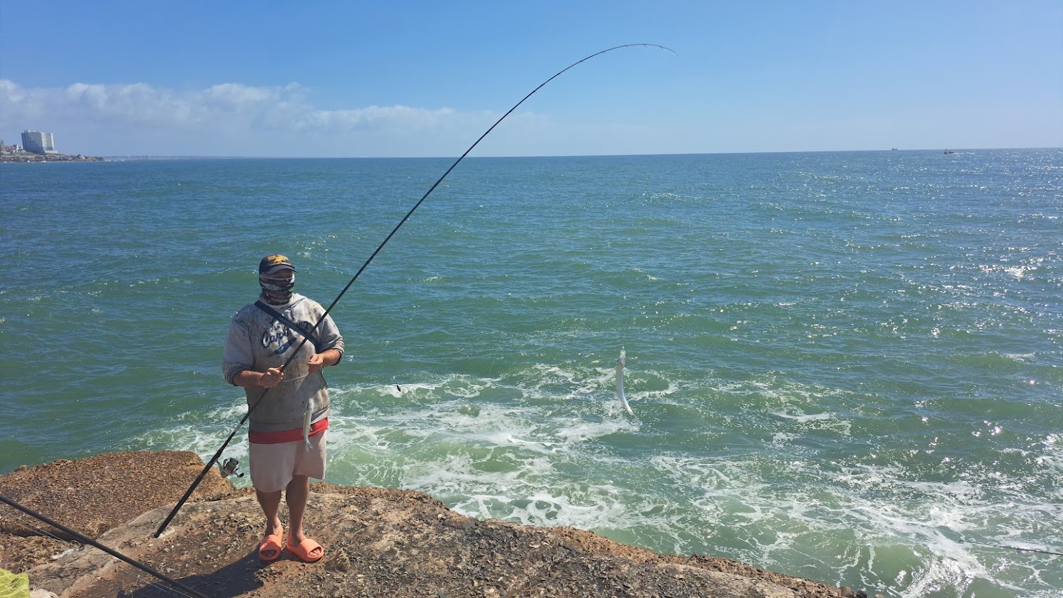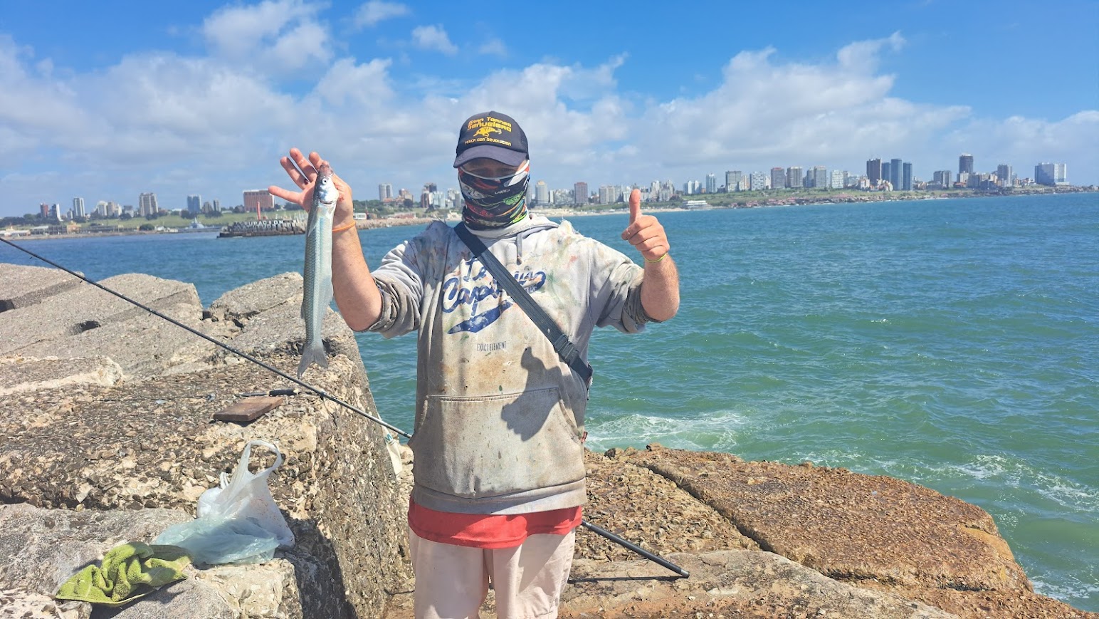 Estuvimos realizando una nota de pesca hoy Viernes 8 de Noviembre del 2024 , en la Escollera Sur de Mar del Plata Argentina.