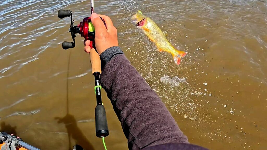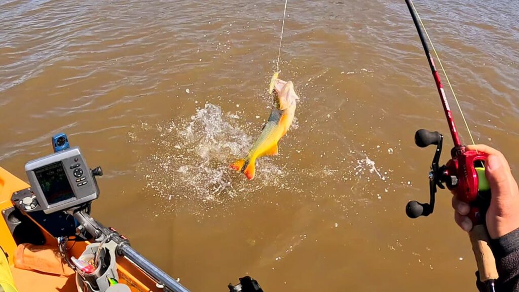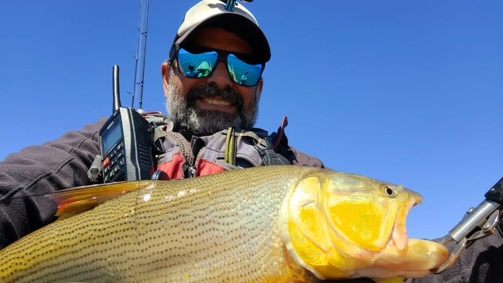 El cielo se tiñe de naranja y el río comienza a despertar. Rodrigo Cobas ajusta su equipo en silencio, mientras el kayak se desliza suavemente. La jornada promete, y el dorado ya está en su mente.