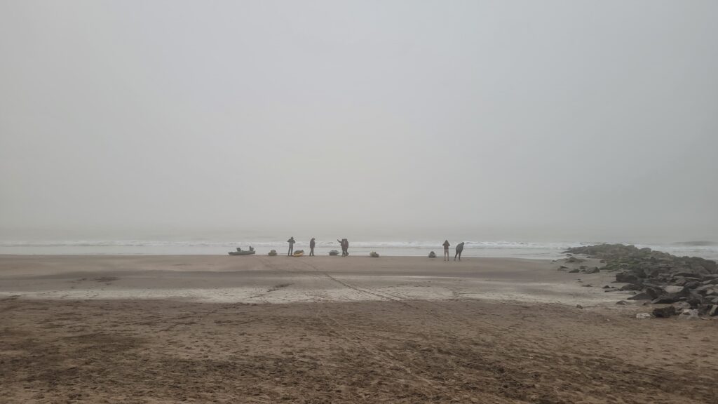 El 9 de julio viajamos con Santiago y Gonzalo a Santa Teresita, haciendo 330 km solo para pescar un día. El pronóstico decía que el mar iba a estar calmo, y así fue… pero lo que no esperábamos era estar toda la jornada cubiertos de niebla cerrada.